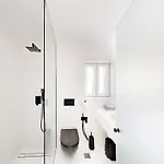 Zur Ausstattung des Badezimmers gehören auch eine getrennte Toilette und eine Dusche. Es werden auch ein Wäschetrockner, Handtücher und Hausschuhe angeboten.